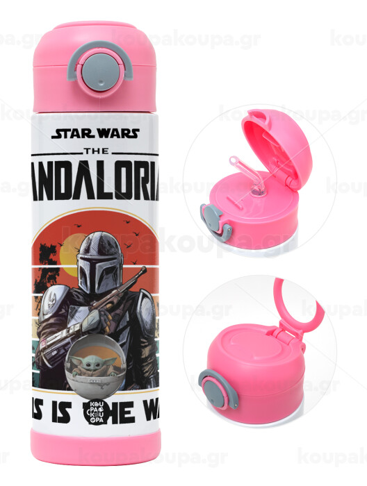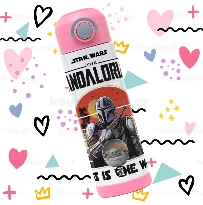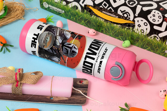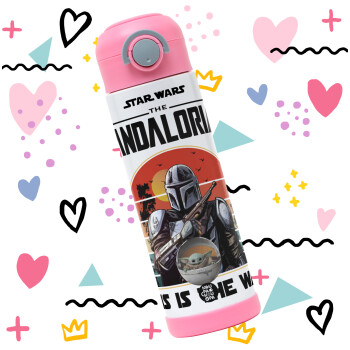 Mandalorian, Easter candle, Childrens hot water bottle, stainless steel, with safety straw, PINK (500ml)