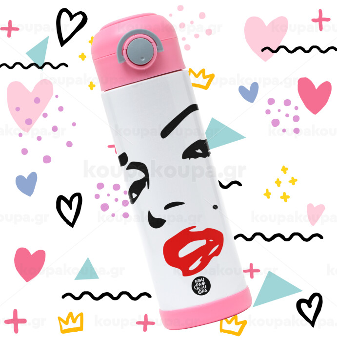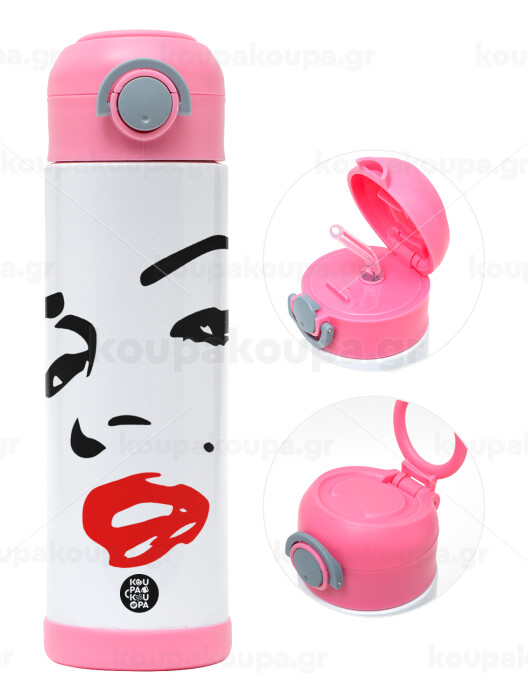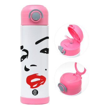 Marilyn Monroe, Easter candle, Childrens hot water bottle, stainless steel, with safety straw, PINK (500ml)