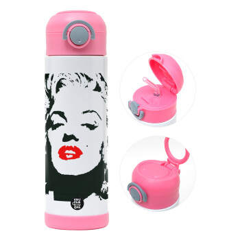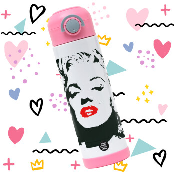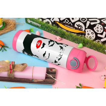 Merilin, Easter candle, Childrens hot water bottle, stainless steel, with safety straw, PINK (500ml)