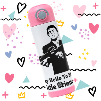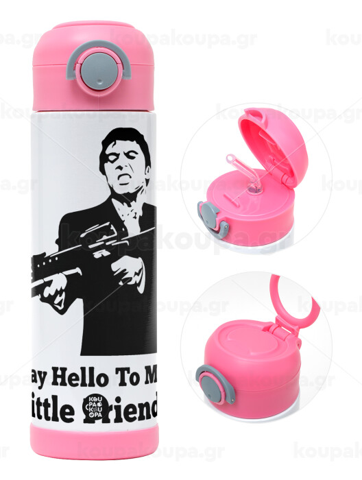 Scarface, Easter candle, Childrens hot water bottle, stainless steel, with safety straw, PINK (500ml)