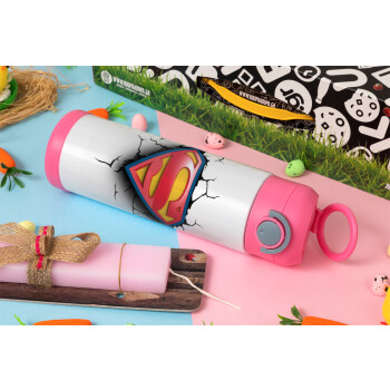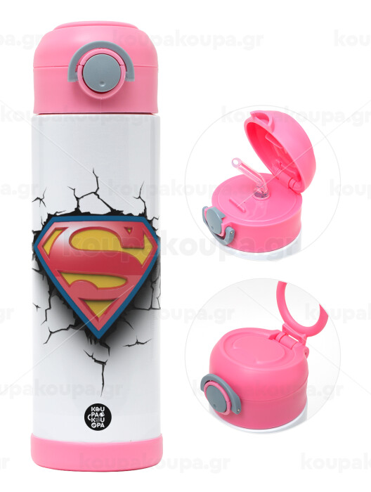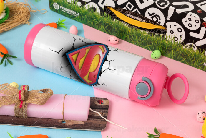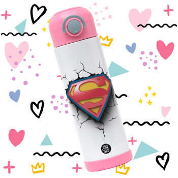 Superman cracked, Easter candle, Childrens hot water bottle, stainless steel, with safety straw, PINK (500ml)
