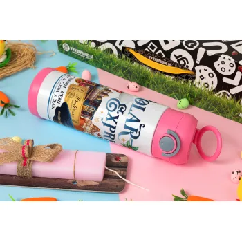 The Polar Express, Easter candle, Childrens hot water bottle, stainless steel, with safety straw, PINK (500ml)