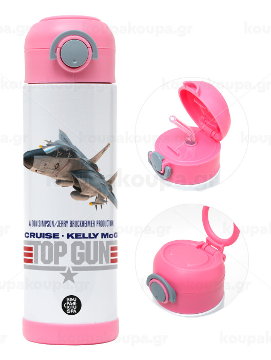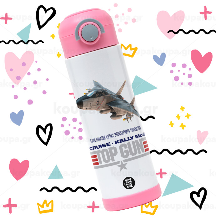 Top Gun, Easter candle, Childrens hot water bottle, stainless steel, with safety straw, PINK (500ml)