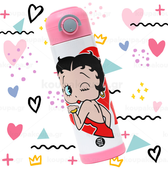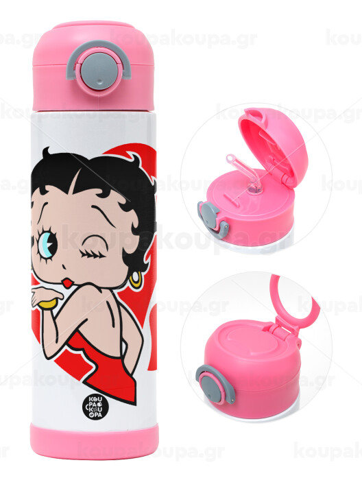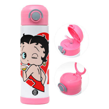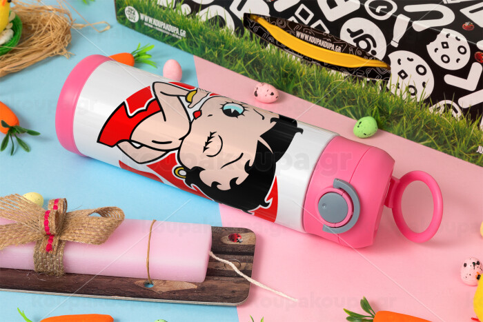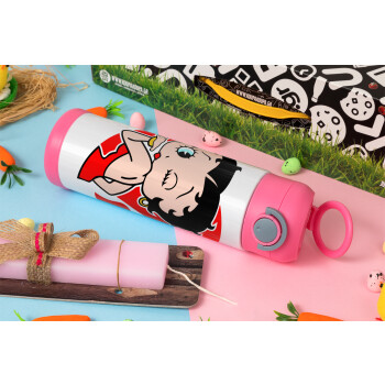 Betty Boop, Easter candle, Childrens hot water bottle, stainless steel, with safety straw, PINK (500ml)
