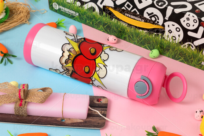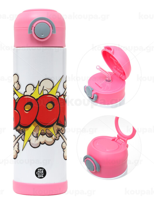 BOOM!!!, Easter candle, Childrens hot water bottle, stainless steel, with safety straw, PINK (500ml)