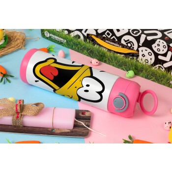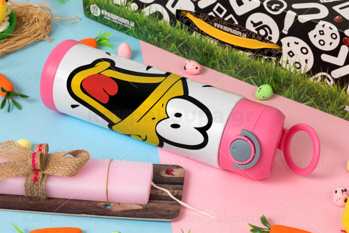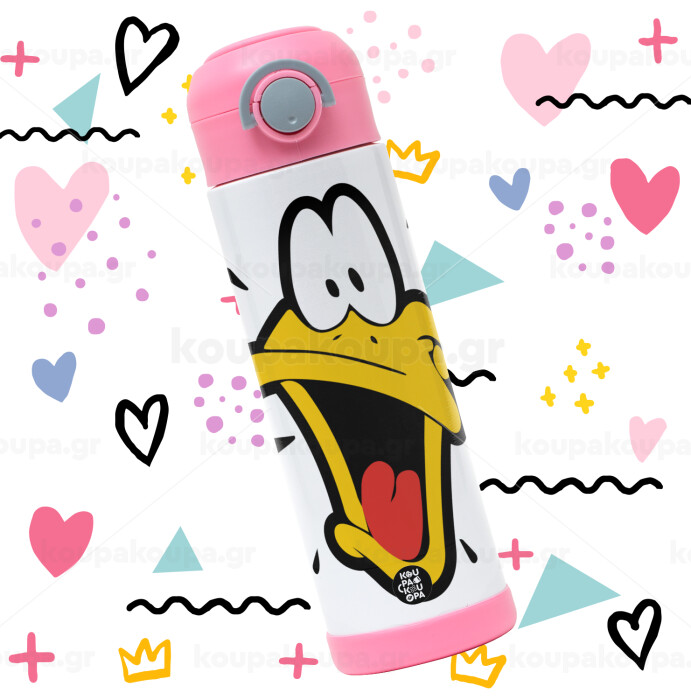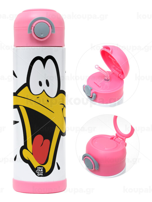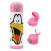 Daffy Duck, Easter candle, Childrens hot water bottle, stainless steel, with safety straw, PINK (500ml)