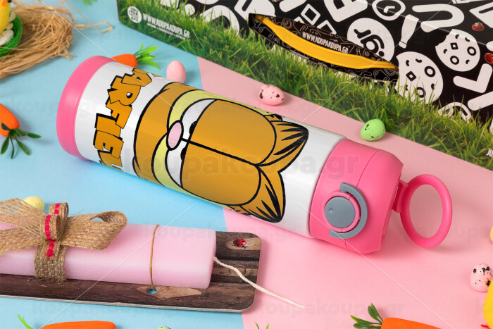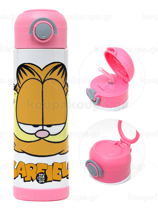 Garfield, Easter candle, Childrens hot water bottle, stainless steel, with safety straw, PINK (500ml)