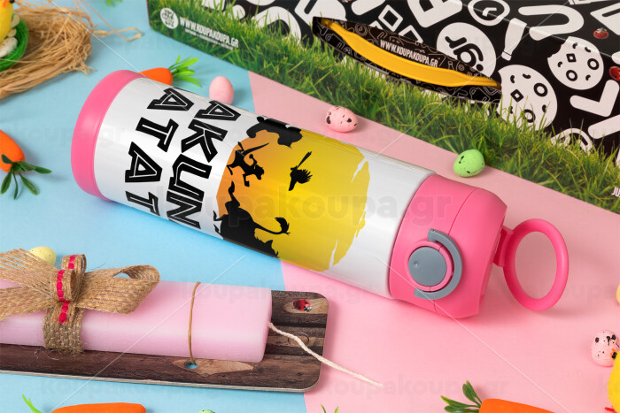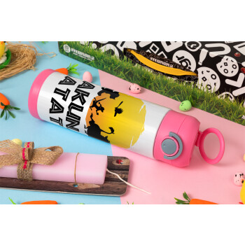 Hakuna Matata, Easter candle, Childrens hot water bottle, stainless steel, with safety straw, PINK (500ml)