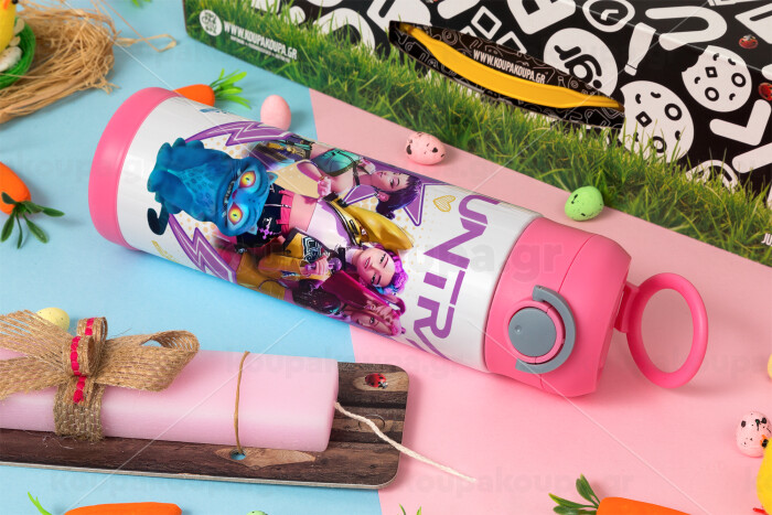 Huntrix K-pop series, Easter candle, Childrens hot water bottle, stainless steel, with safety straw, PINK (500ml)