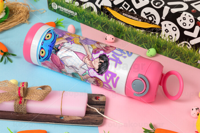 Huntrix Saja Boys, Easter candle, Childrens hot water bottle, stainless steel, with safety straw, PINK (500ml)