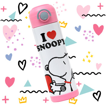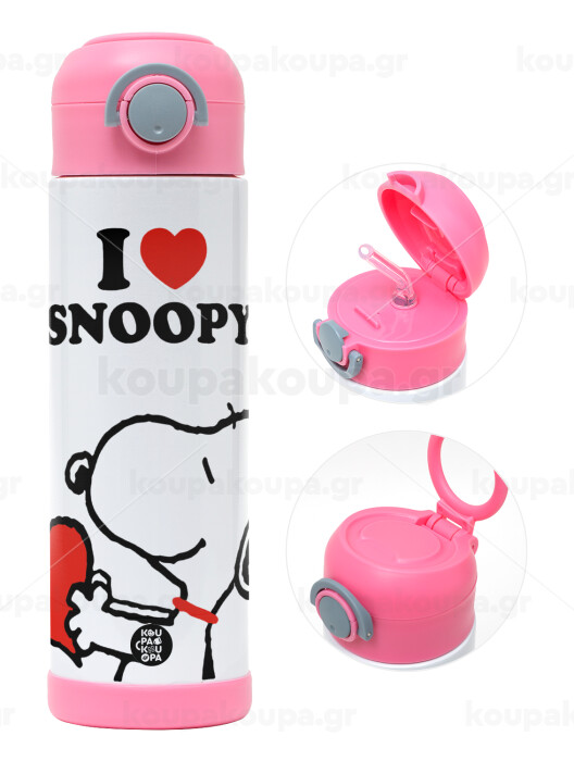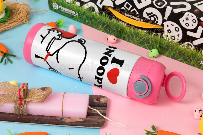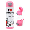 I LOVE SNOOPY, Easter candle, Childrens hot water bottle, stainless steel, with safety straw, PINK (500ml)