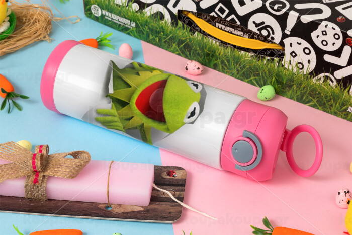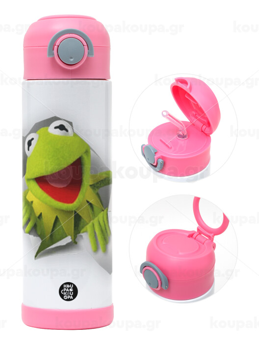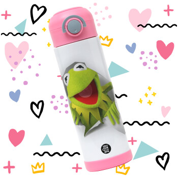 Kermit the frog, Easter candle, Childrens hot water bottle, stainless steel, with safety straw, PINK (500ml)