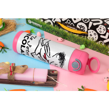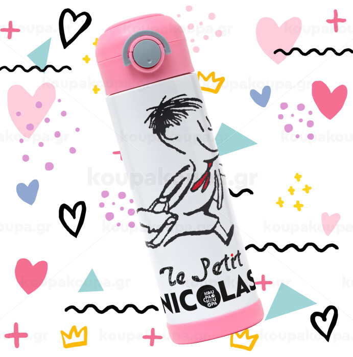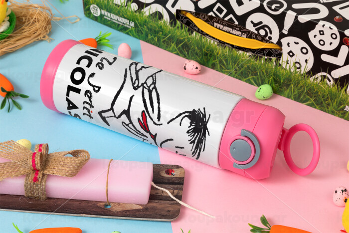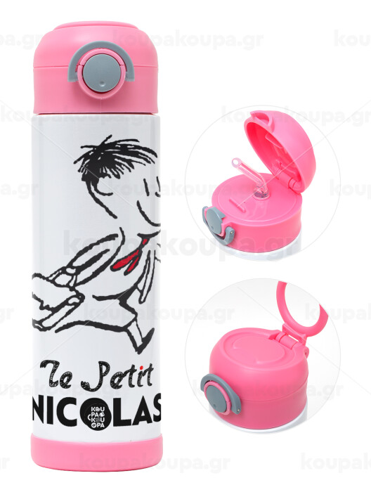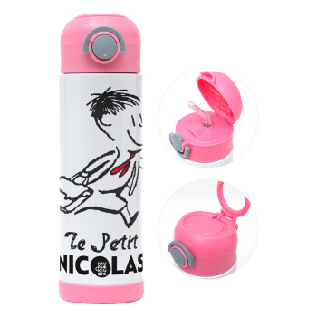 Le Petit Nicolas, Easter candle, Childrens hot water bottle, stainless steel, with safety straw, PINK (500ml)