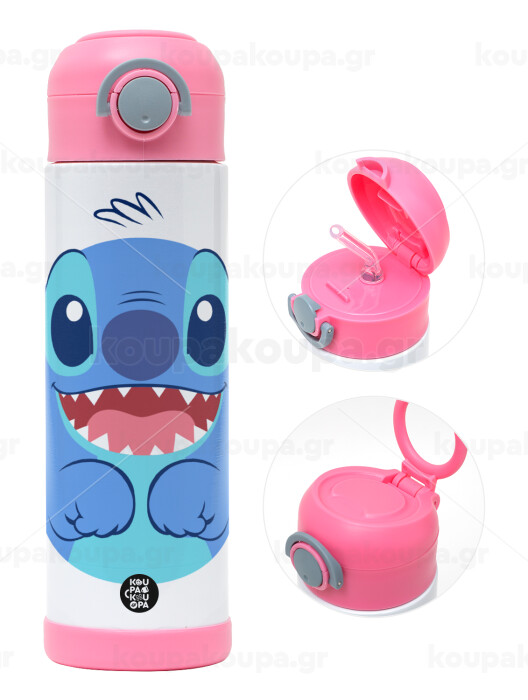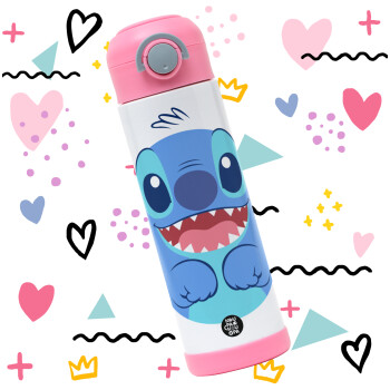 Lilo & Stitch blue, Easter candle, Childrens hot water bottle, stainless steel, with safety straw, PINK (500ml)