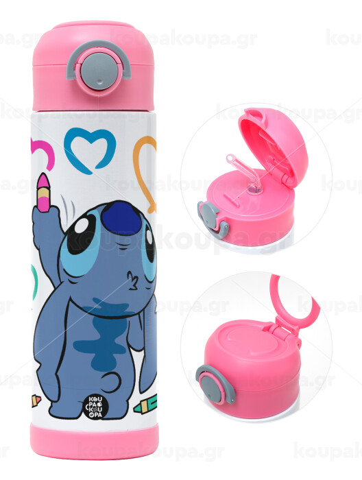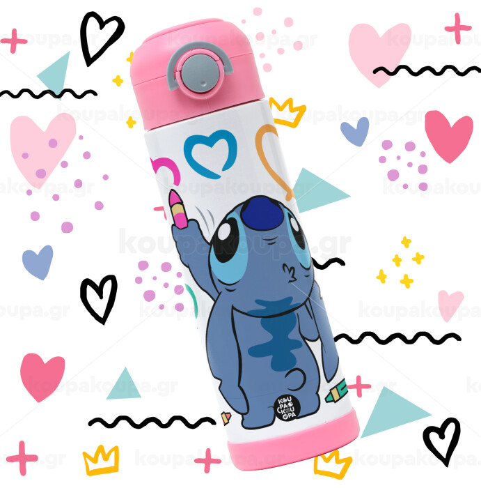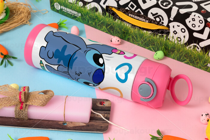 Lilo & Stitch painting, Easter candle, Childrens hot water bottle, stainless steel, with safety straw, PINK (500ml)