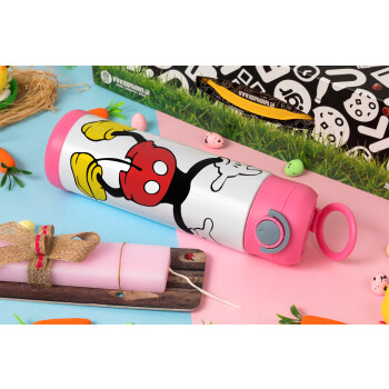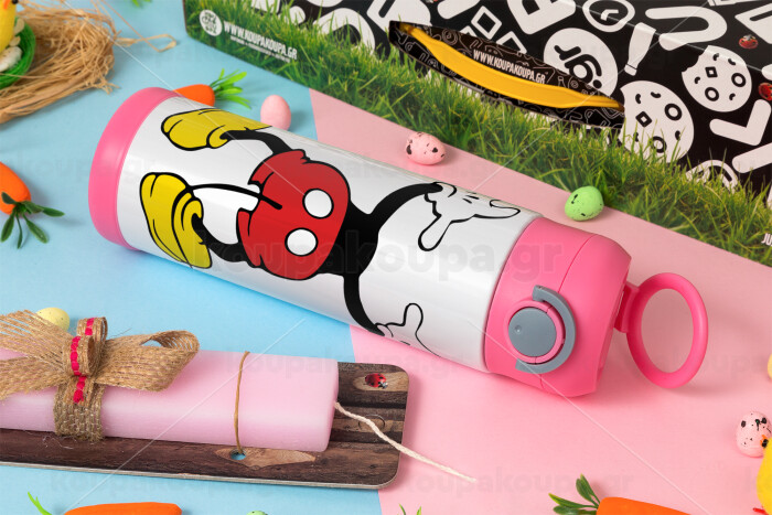Mickey hide..., Easter candle, Childrens hot water bottle, stainless steel, with safety straw, PINK (500ml)