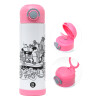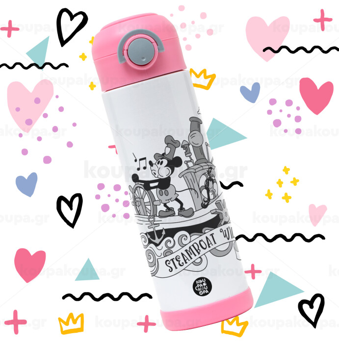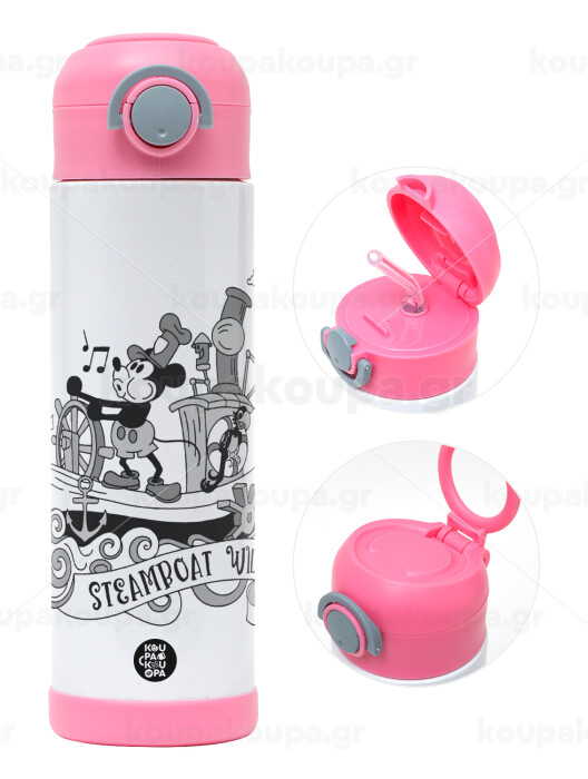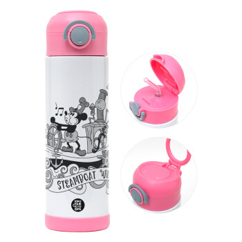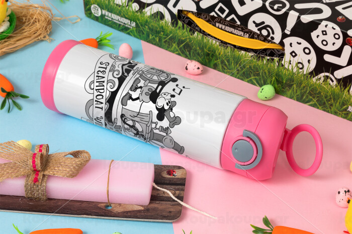 Mickey steamboat, Easter candle, Childrens hot water bottle, stainless steel, with safety straw, PINK (500ml)