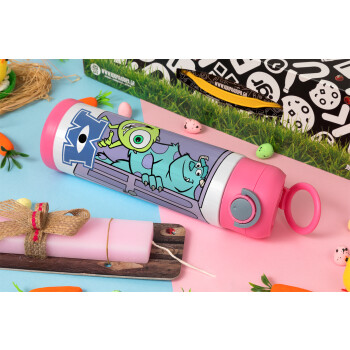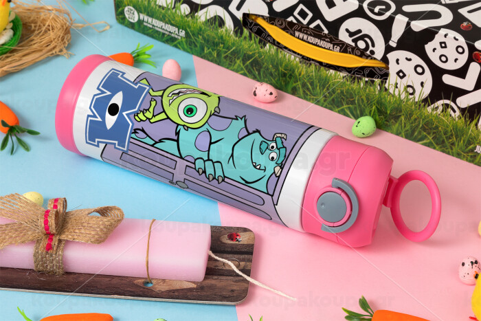 Monster inc, Easter candle, Childrens hot water bottle, stainless steel, with safety straw, PINK (500ml)