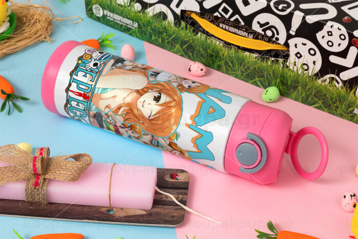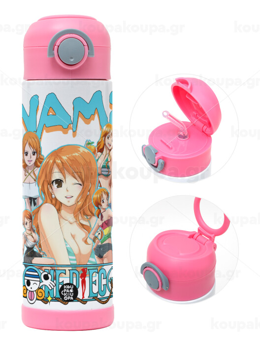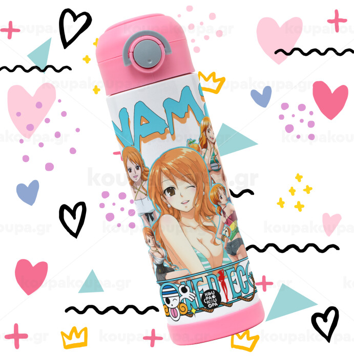 Nami One Piece, Easter candle, Childrens hot water bottle, stainless steel, with safety straw, PINK (500ml)