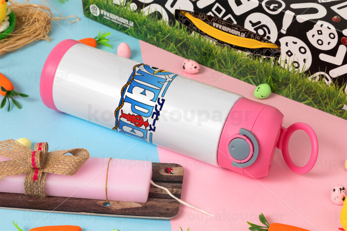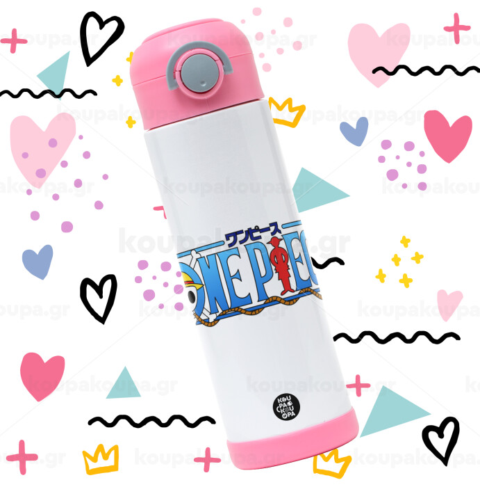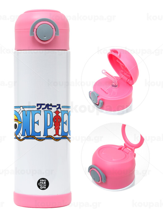 Onepiece logo, Easter candle, Childrens hot water bottle, stainless steel, with safety straw, PINK (500ml)
