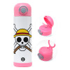 Onepiece skull, Easter candle, Childrens hot water bottle, stainless steel, with safety straw, PINK (500ml)