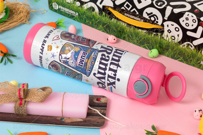 Ramyeon Huntrix, Easter candle, Childrens hot water bottle, stainless steel, with safety straw, PINK (500ml)