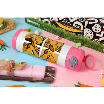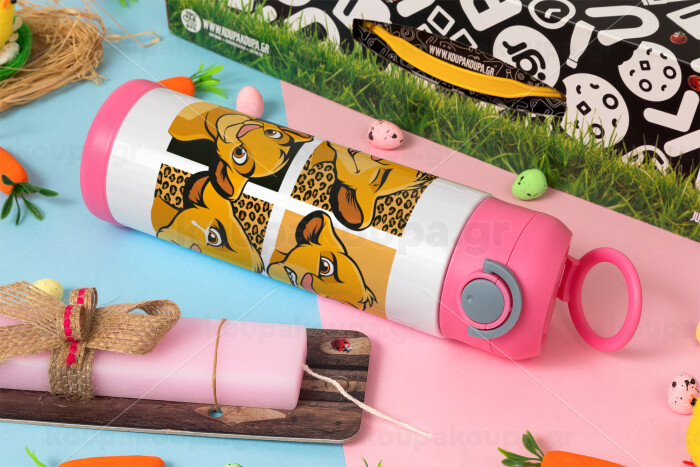 Simba, lion king, Easter candle, Childrens hot water bottle, stainless steel, with safety straw, PINK (500ml)