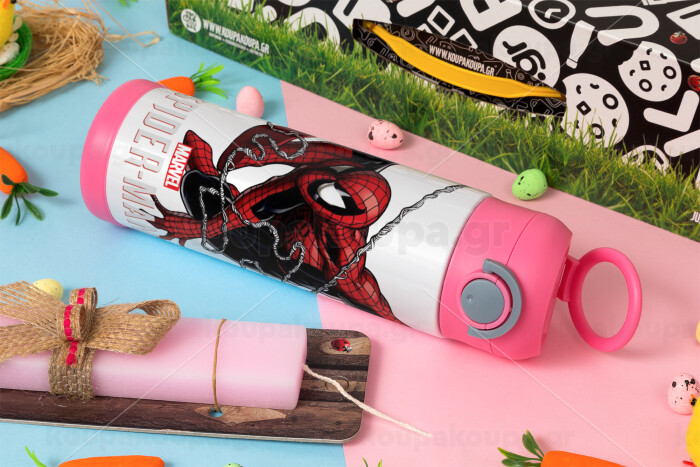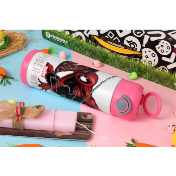 Spider-man, Easter candle, Childrens hot water bottle, stainless steel, with safety straw, PINK (500ml)