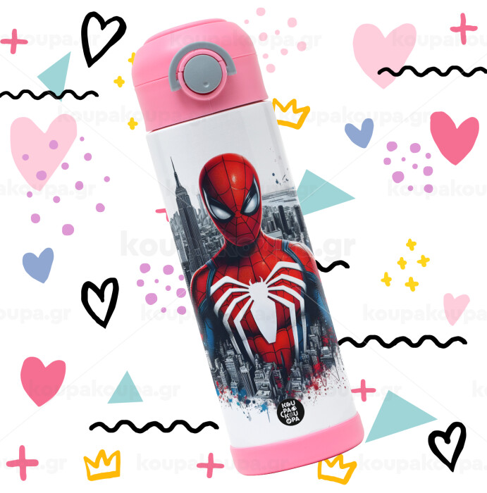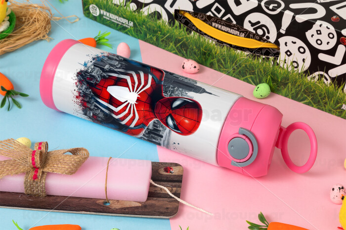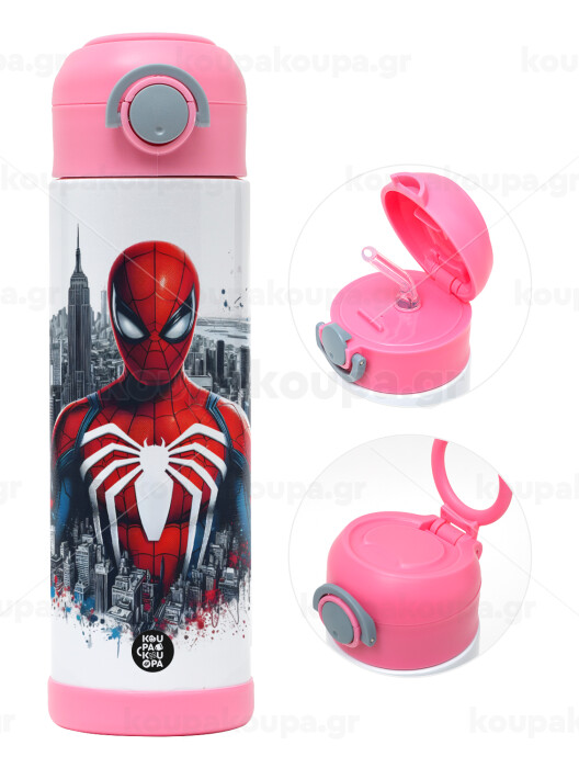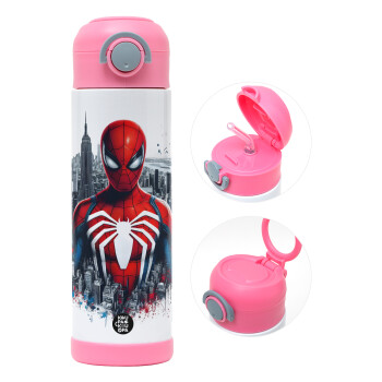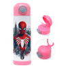 Spiderman City, Easter candle, Childrens hot water bottle, stainless steel, with safety straw, PINK (500ml)