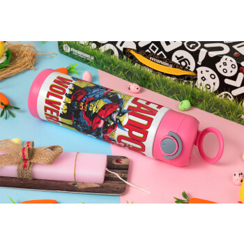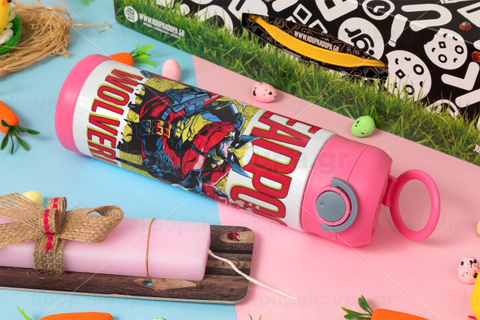 Superhero Deadpool Wolverine, Easter candle, Childrens hot water bottle, stainless steel, with safety straw, PINK (500ml)
