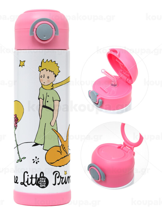 The Little prince classic, Easter candle, Childrens hot water bottle, stainless steel, with safety straw, PINK (500ml)