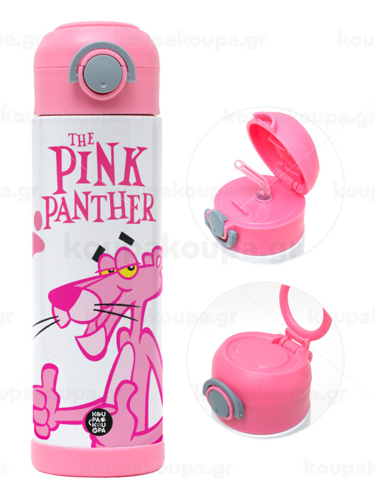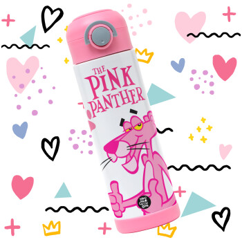 The pink panther, Easter candle, Childrens hot water bottle, stainless steel, with safety straw, PINK (500ml)