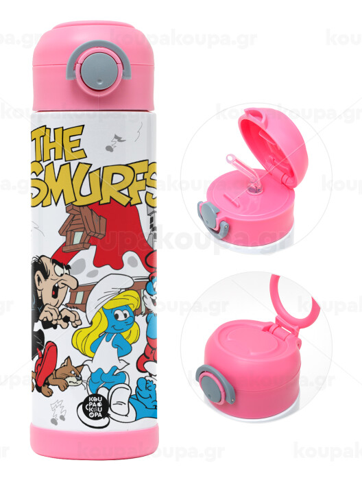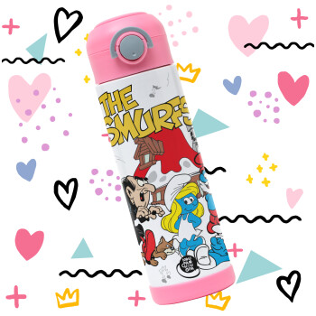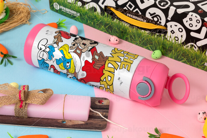 The smurfs, Easter candle, Childrens hot water bottle, stainless steel, with safety straw, PINK (500ml)