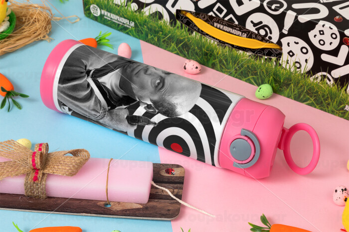 Θου Βου Φαλακρός Πράκτωρ, Easter candle, Childrens hot water bottle, stainless steel, with safety straw, PINK (500ml)