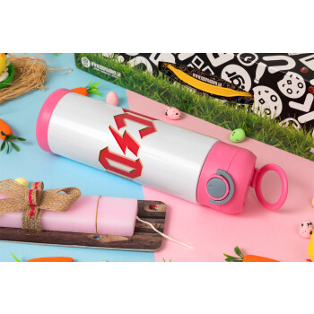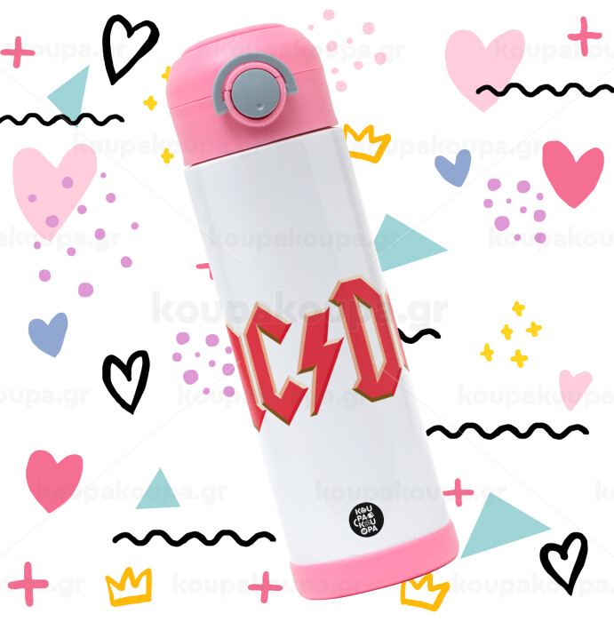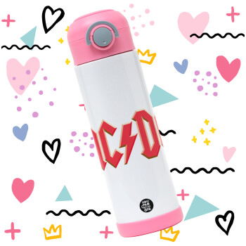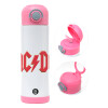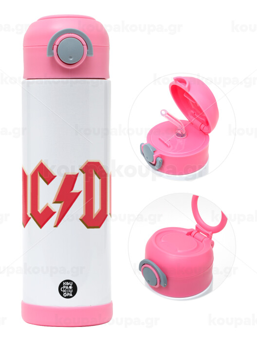 AC/DC, Easter candle, Childrens hot water bottle, stainless steel, with safety straw, PINK (500ml)