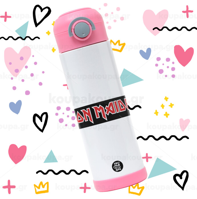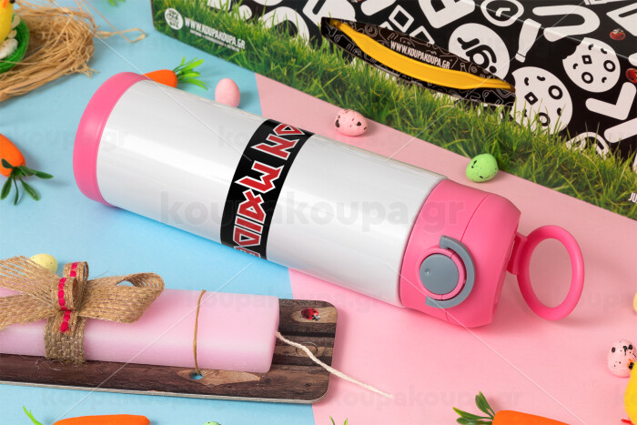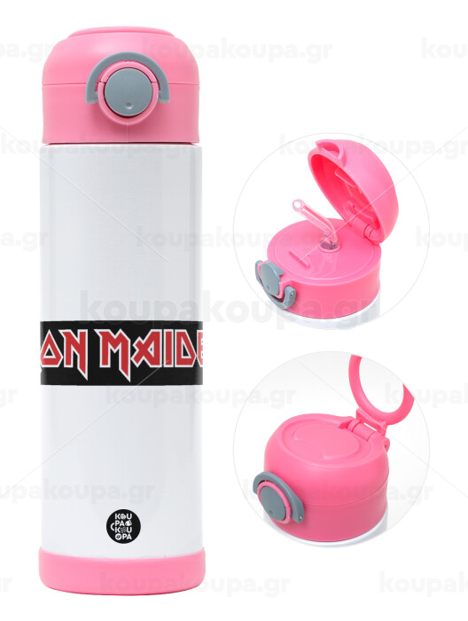 Iron maiden, Easter candle, Childrens hot water bottle, stainless steel, with safety straw, PINK (500ml)