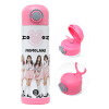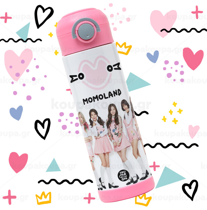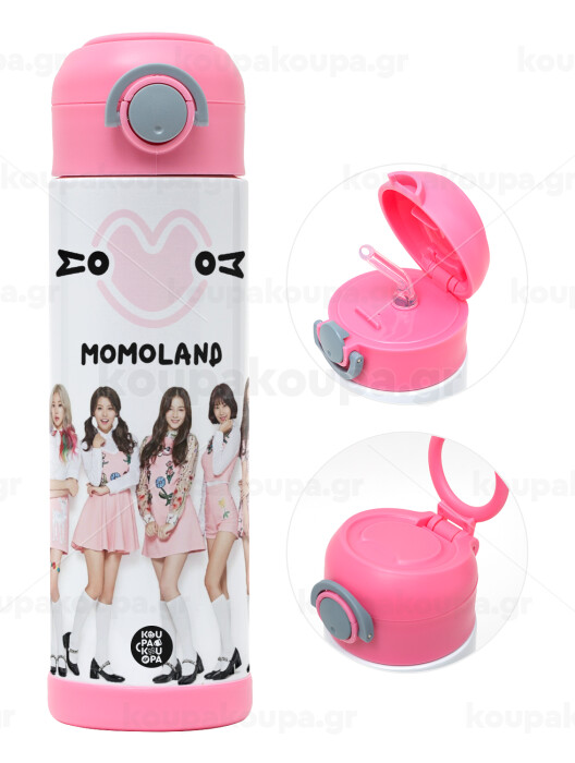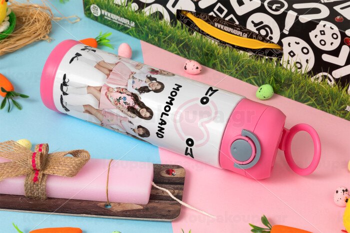 Momoland pink, Easter candle, Childrens hot water bottle, stainless steel, with safety straw, PINK (500ml)