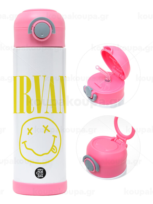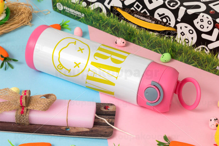 Nirvana, Easter candle, Childrens hot water bottle, stainless steel, with safety straw, PINK (500ml)