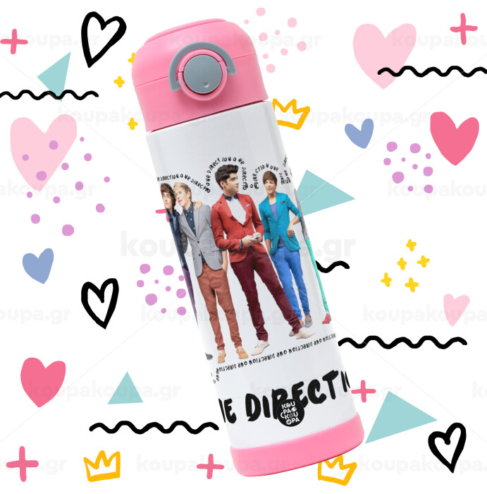 One Direction , Easter candle, Childrens hot water bottle, stainless steel, with safety straw, PINK (500ml)