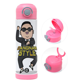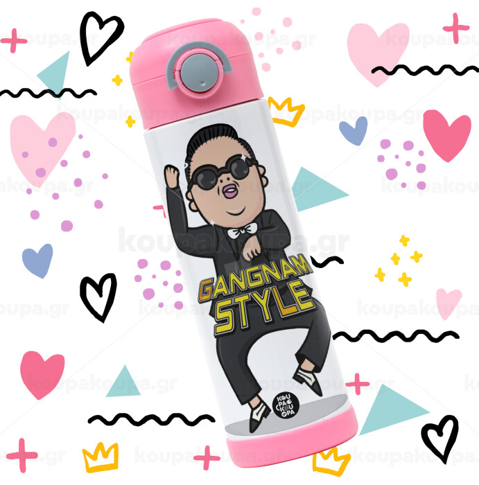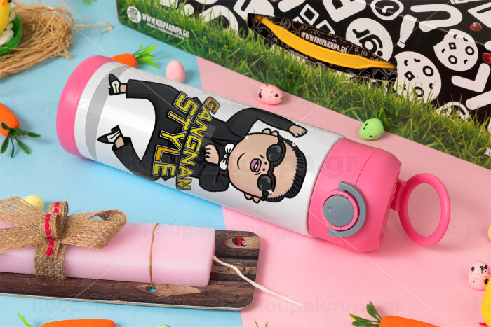 PSY - GANGNAM STYLE, Easter candle, Childrens hot water bottle, stainless steel, with safety straw, PINK (500ml)