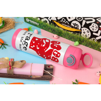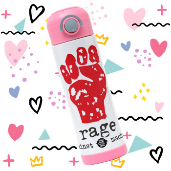 Rage against the machine, Easter candle, Childrens hot water bottle, stainless steel, with safety straw, PINK (500ml)