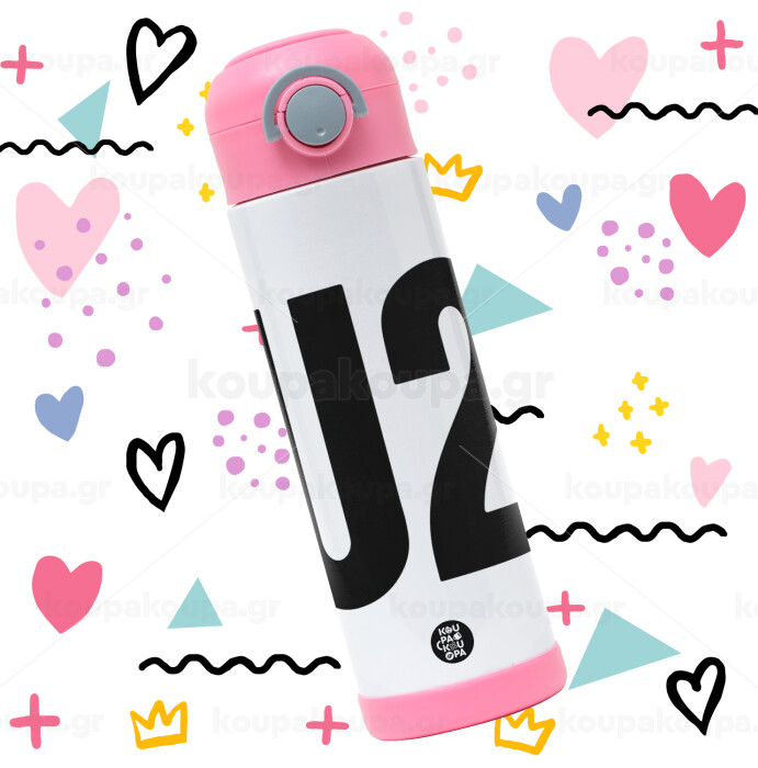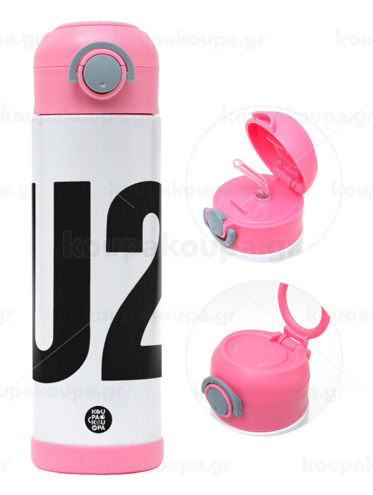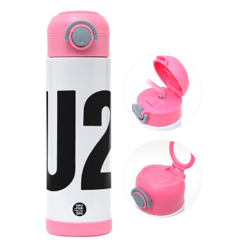 U2 , Easter candle, Childrens hot water bottle, stainless steel, with safety straw, PINK (500ml)