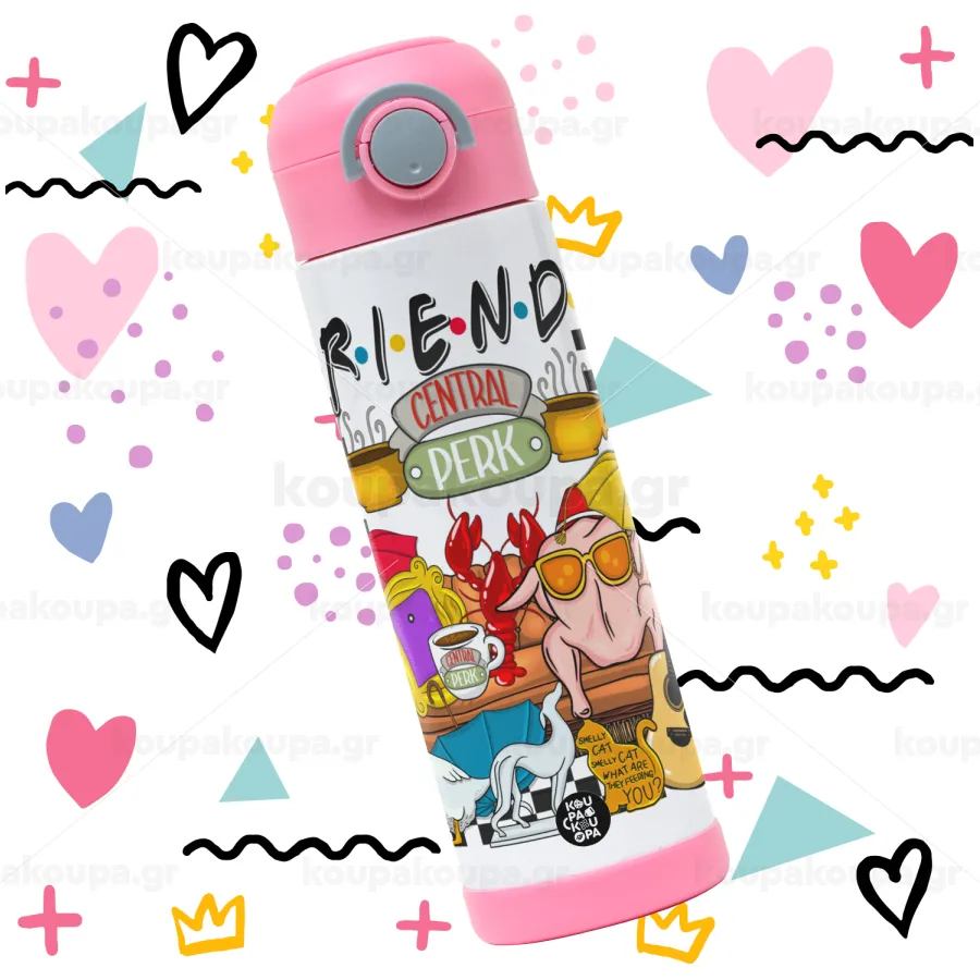 Friends, Easter candle, Childrens hot water bottle, stainless steel, with safety straw, PINK (500ml)