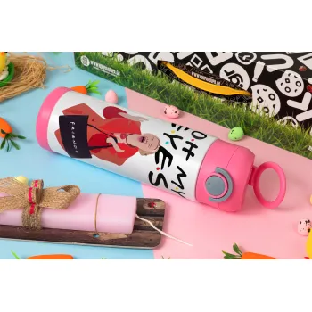 Friends,. oh my eyes Phoebe, Easter candle, Childrens hot water bottle, stainless steel, with safety straw, PINK (500ml)