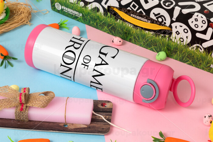 Game of Thrones, Easter candle, Childrens hot water bottle, stainless steel, with safety straw, PINK (500ml)