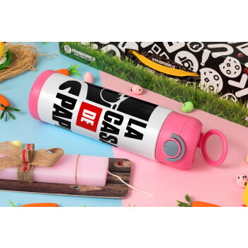 La casa de papel, Easter candle, Childrens hot water bottle, stainless steel, with safety straw, PINK (500ml)
