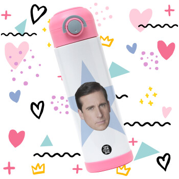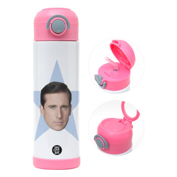 michael the office star, Easter candle, Childrens hot water bottle, stainless steel, with safety straw, PINK (500ml)