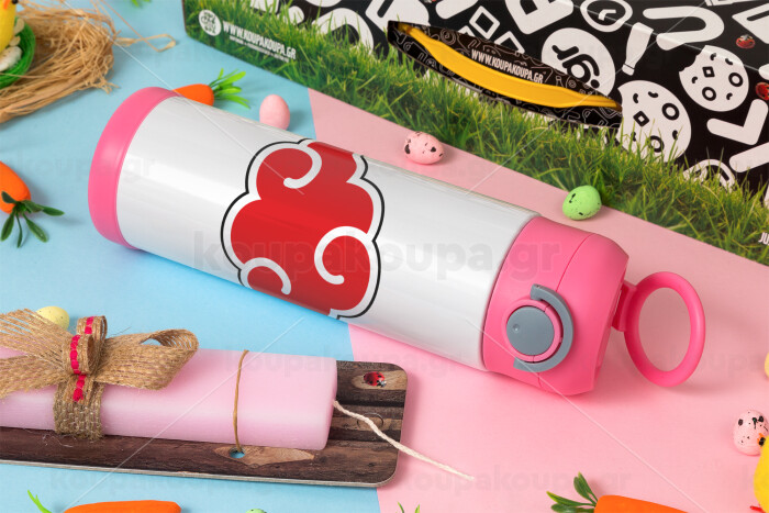 Naruto Akatsuki Cloud, Easter candle, Childrens hot water bottle, stainless steel, with safety straw, PINK (500ml)