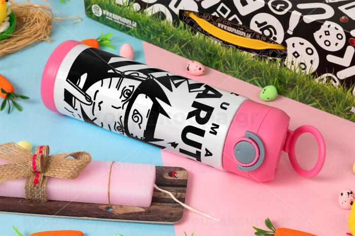 Naruto uzumaki, Easter candle, Childrens hot water bottle, stainless steel, with safety straw, PINK (500ml)