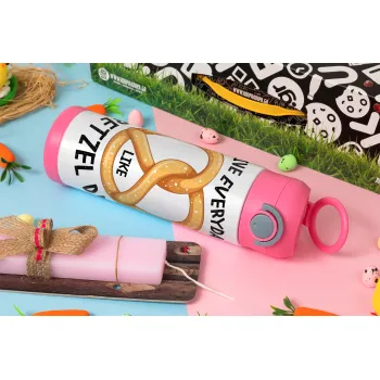 The office, Live every day like pretzel day, Easter candle, Childrens hot water bottle, stainless steel, with safety straw, PINK (500ml)